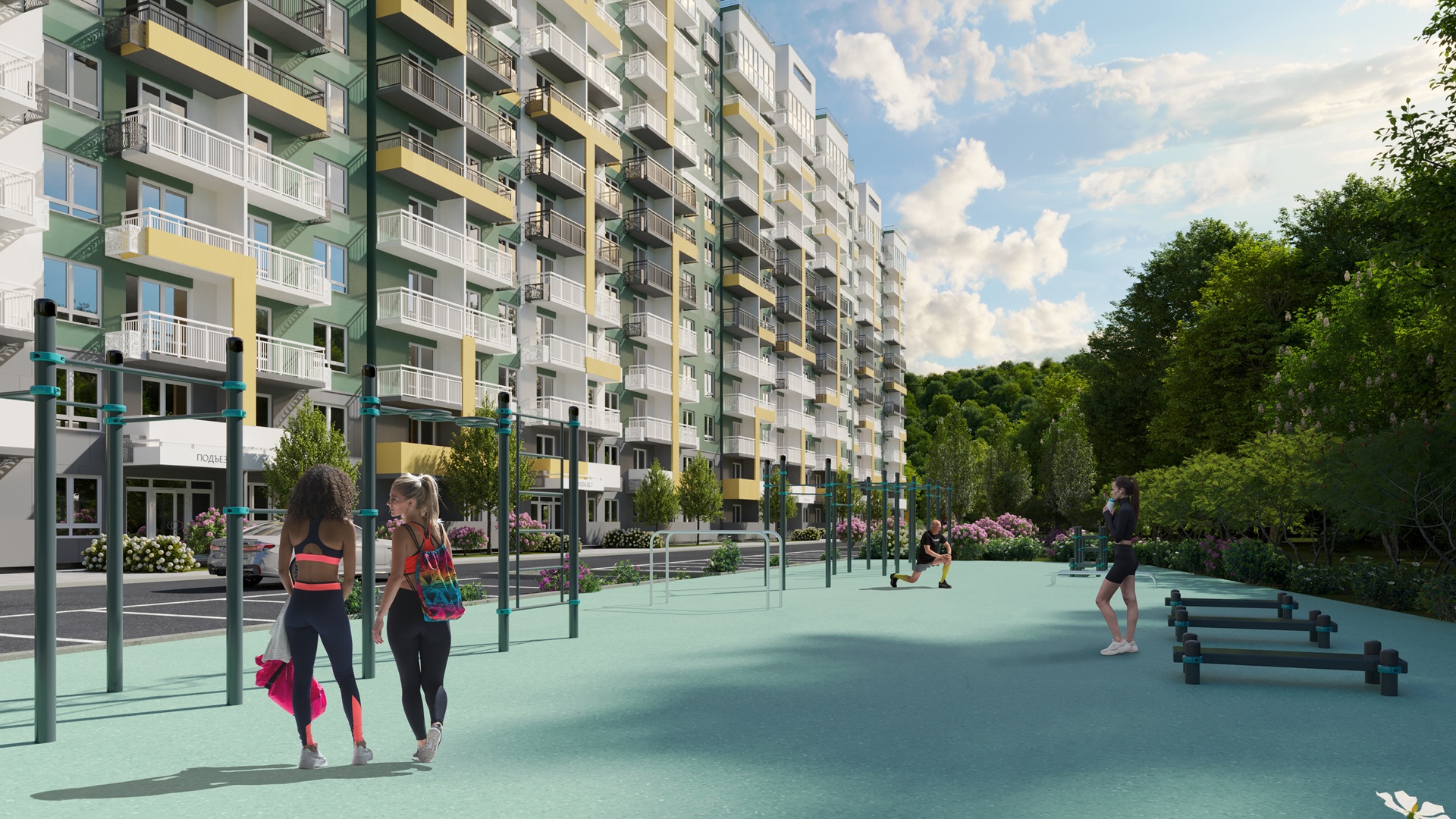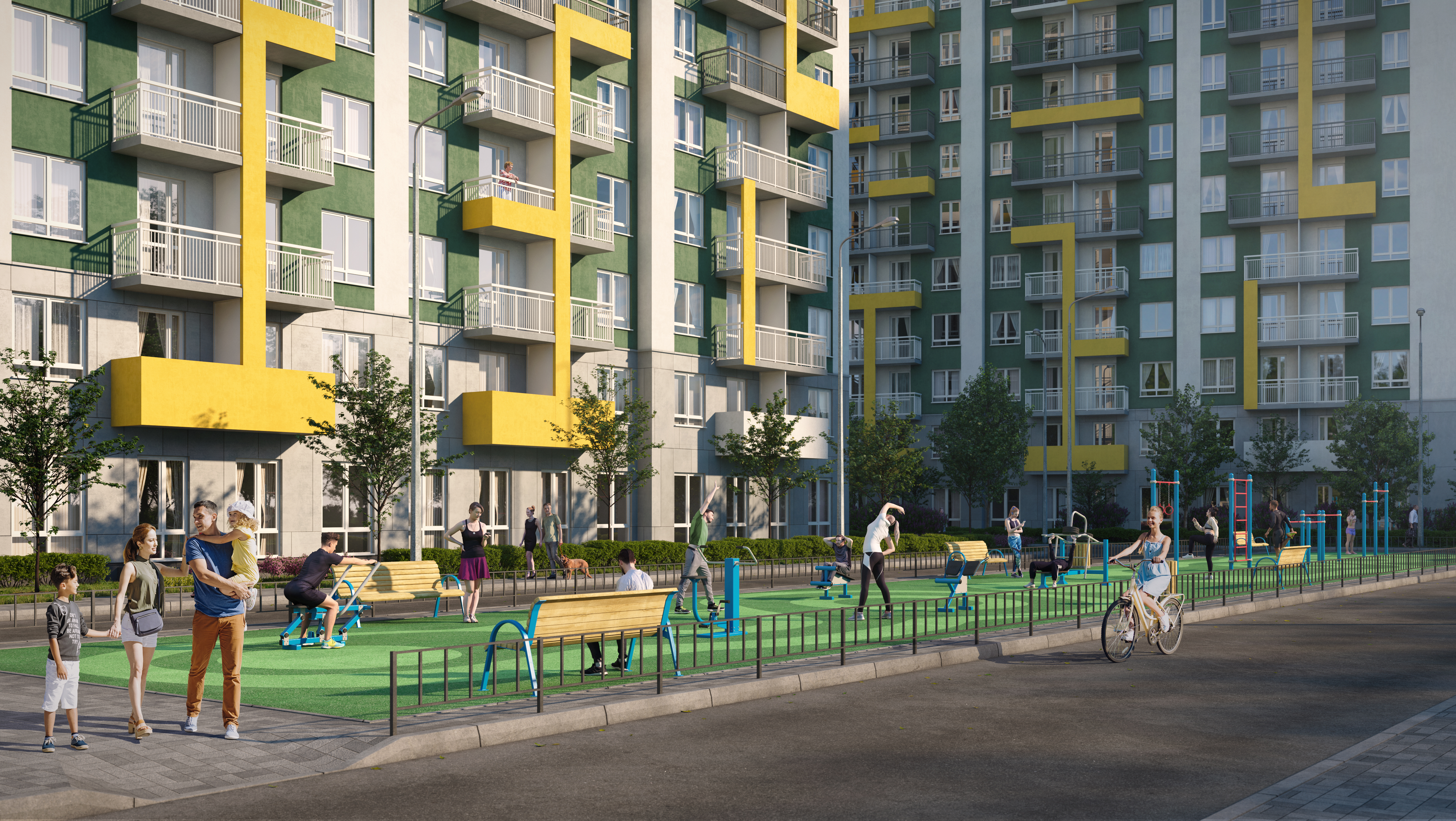 В жилом комплексе «Флора» спортивные зоны становятся отдушиной для тренировок и релаксации.